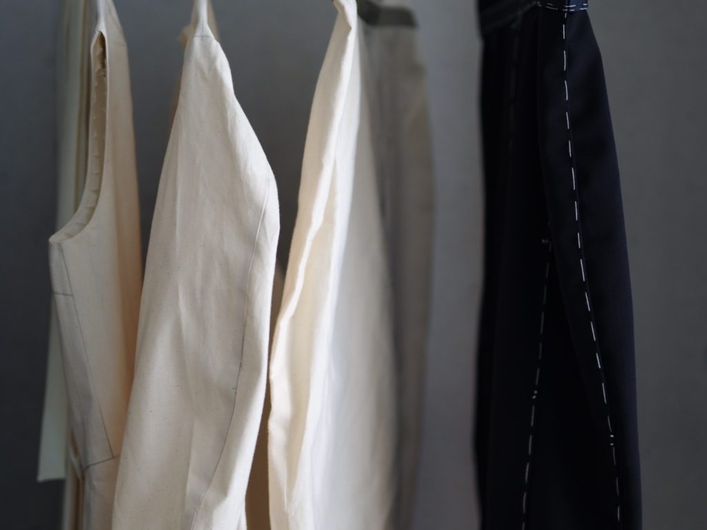 紳士服地を用い、女性のためのドレスやジャケットを仕立て、